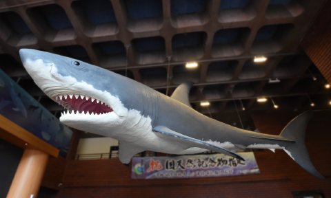館内には、かつて秩父の海を泳いでいた巨大ザメ「メガロドン」の実物大模型や、国の天然記念物である「古秩父湾」の化石などが展示されています。