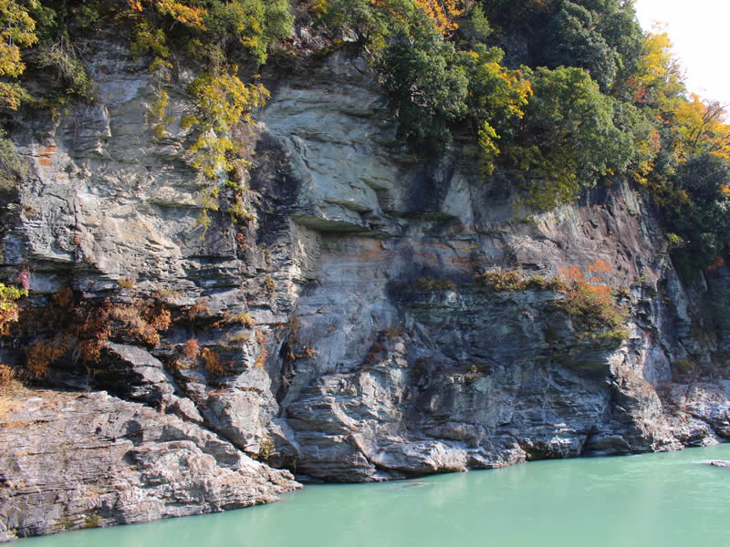 岩畳周辺の喧騒から離れ、川の流れる音だけが響く静寂の中で、地球の息吹を感じられる絶景ポイントです。