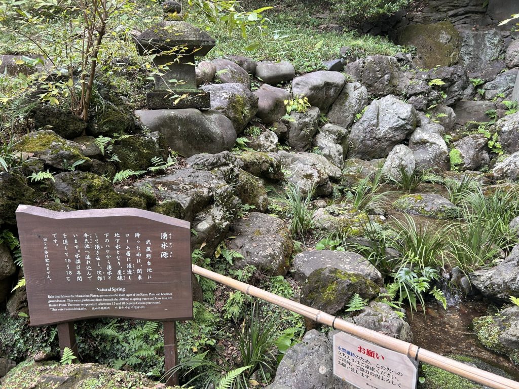 武蔵野に降る雨がしみ込み、地下水となってこの庭園に湧いています。いわば武蔵野の生きとし生けるもの全ての生命力が詰まった湧き水です。