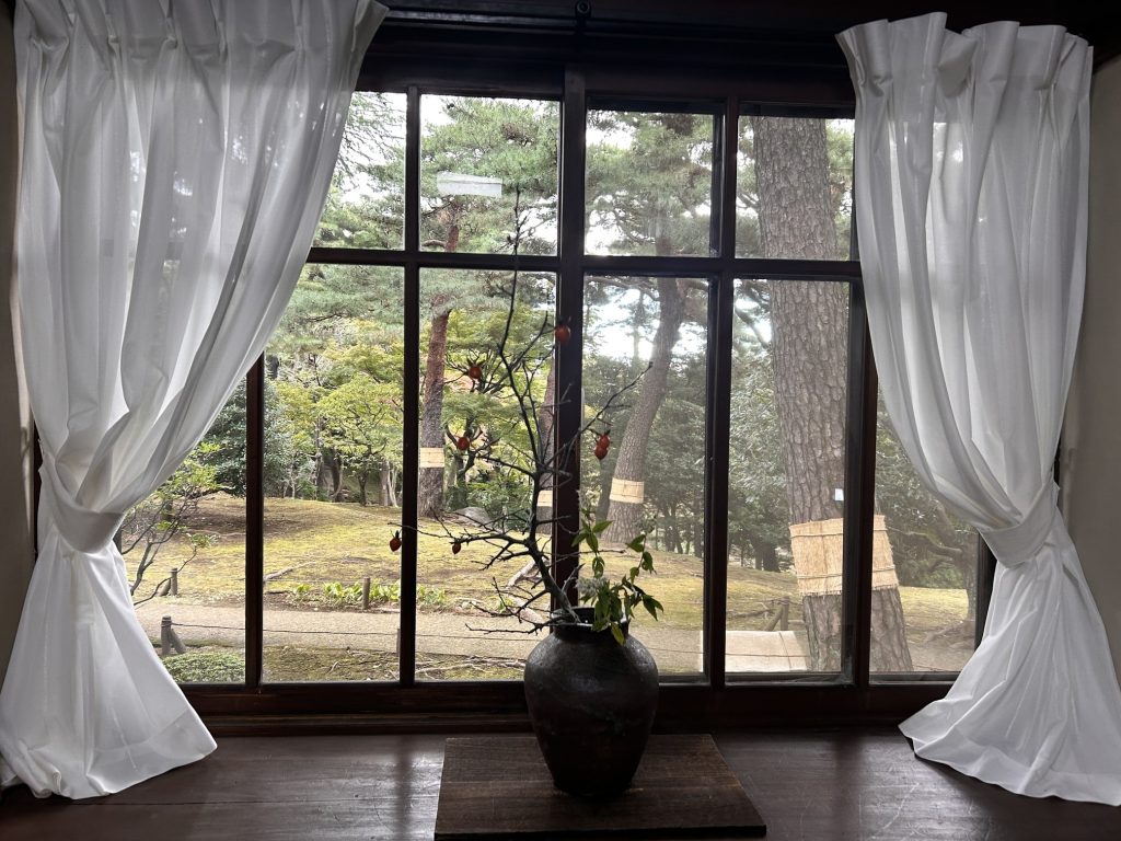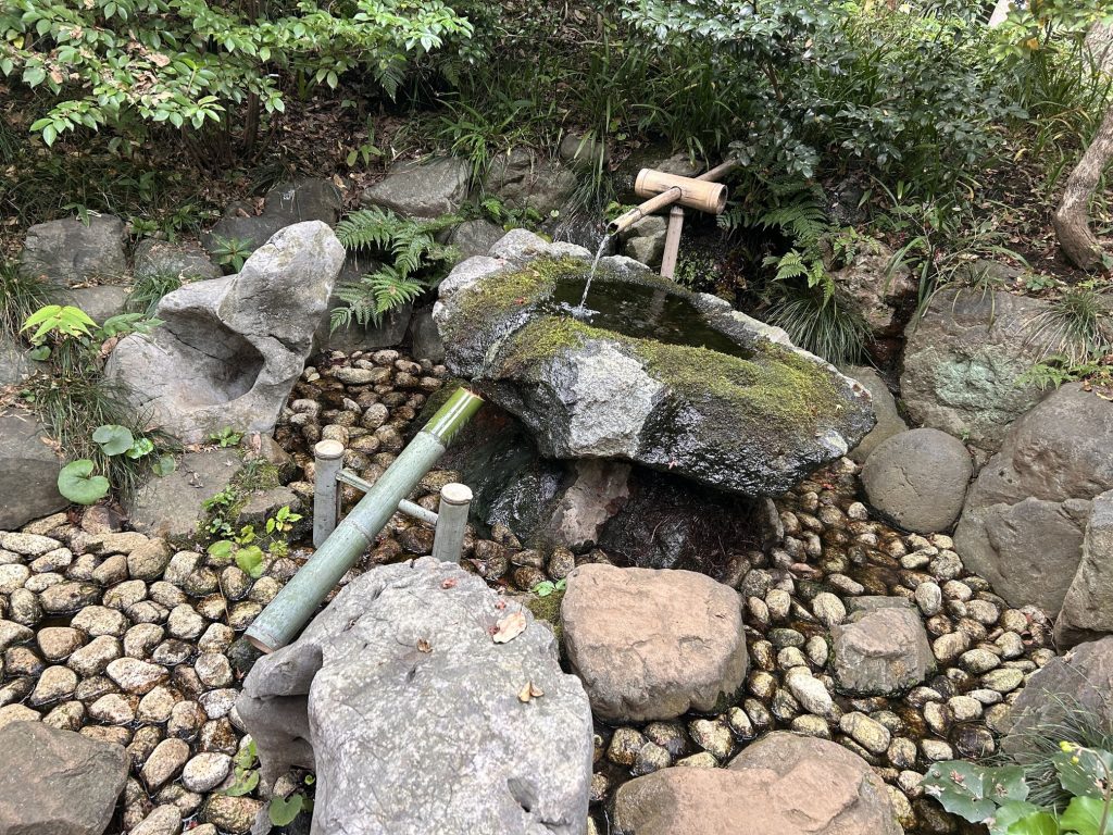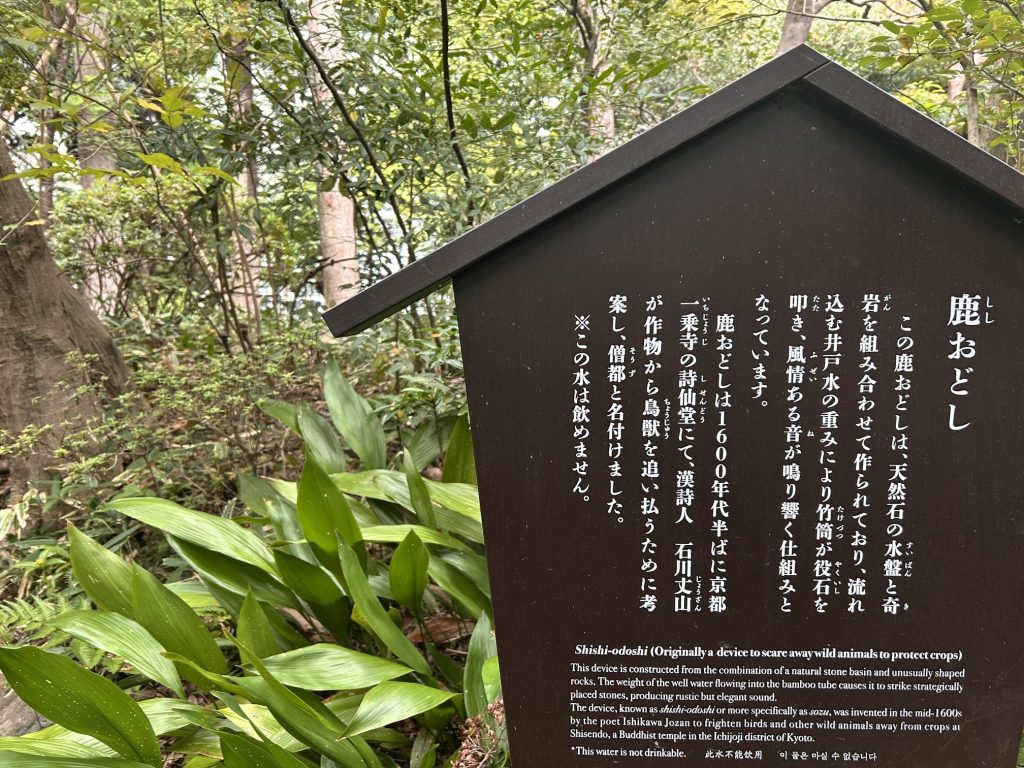 静かな庭園のなか、チョロチョロと流れる井戸水と、一定のリズムで「カコン」と響く鹿おどしはずっと聴いていても飽きません。