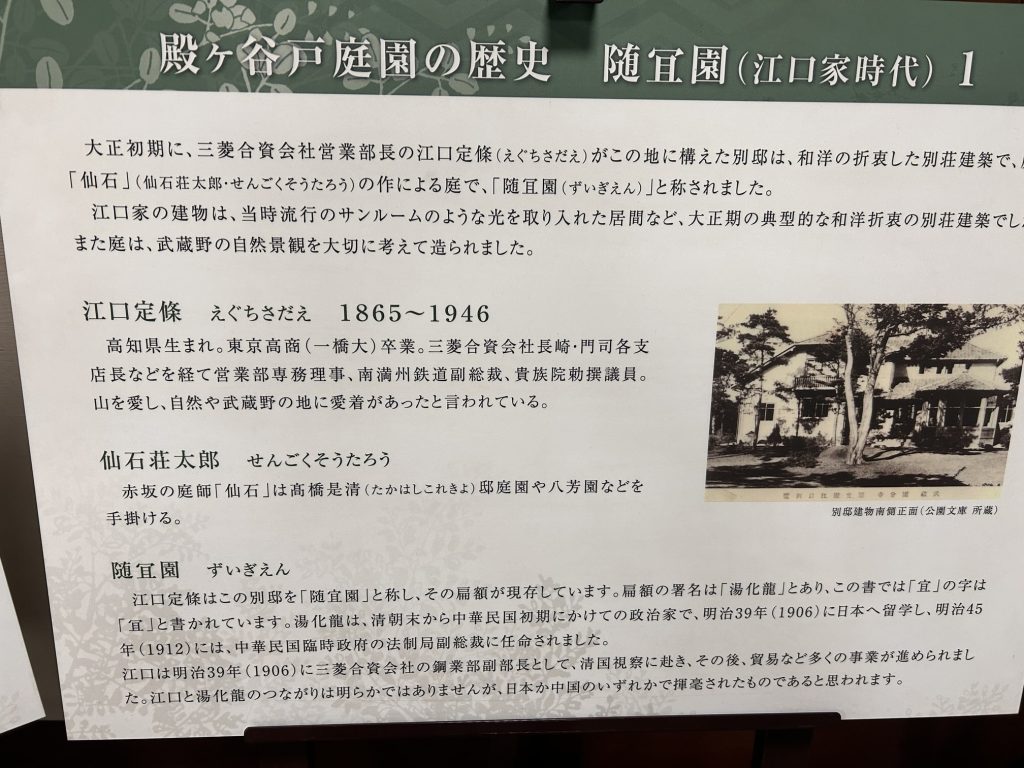 岩崎家の歴史が書かれた壁掛けパネルには、この庭園を36億で都に売ったことが書かれており、資産家ってすげー!と資本主義を実感させられました。庶民には売る別荘もありません。