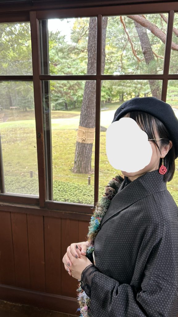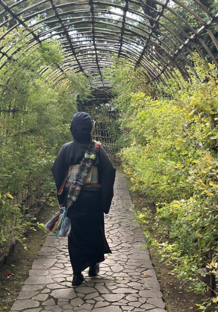 でも青々とした葉のトンネルと石畳のような通路も素敵で、着物がよく映えました。